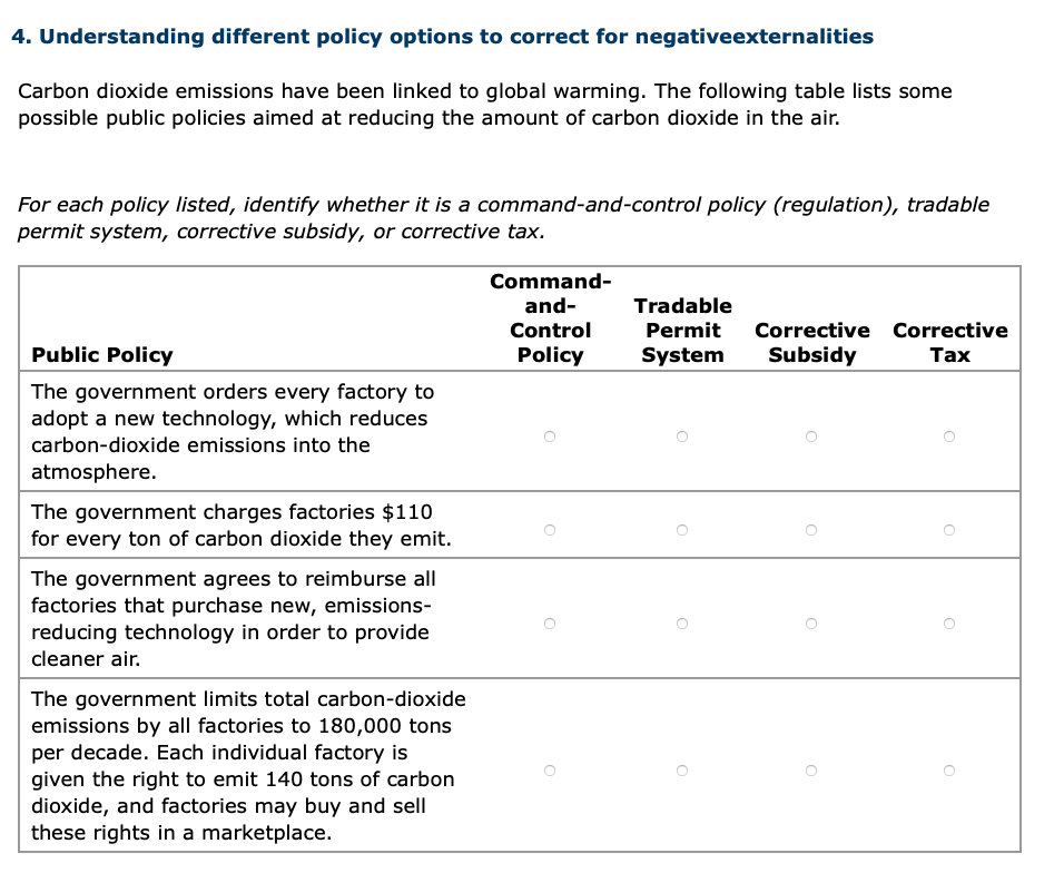 Solved 4. Understanding different policy options to correct